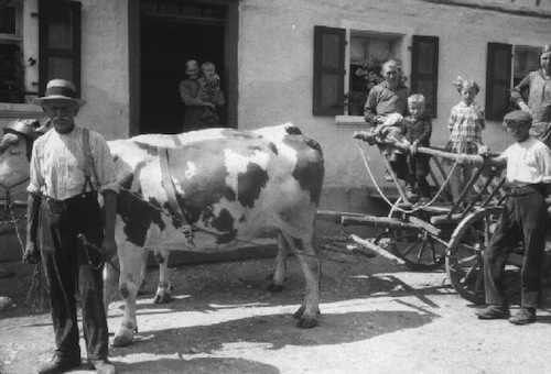 | links: Andreas Weihermüller, erster Sohn des Johann Weihermüller, vor dem väterlichen Hof in Eben im August 1928 |